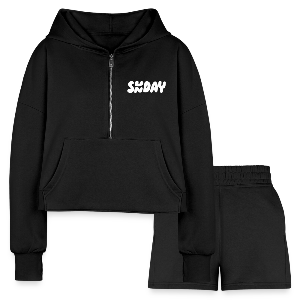 Elevate your athleisure game with our Women's Cropped Half-Zip Hoodie and High-Waist Jogger Shorts Set. Crafted for both style and comfort, this matching ensemble combines a trendy cropped hoodie with high-waisted, ultra-comfy jogger shorts, making it the ideal choice for workouts or casual outings.